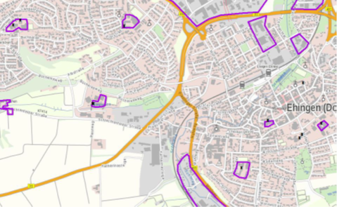 Die Ausbaugebiete im vorliegenden Antrag sind einige Schulstandorte in der Stadt Ehingen. Aufgrund der bisherigen, kommunalen Breitbandprojekte wie auch der Versorgungssituation von TK-Netzbetreibern befinden sich diese verstreut über das gesamte Gemarkungsgebiet Ehingen: